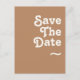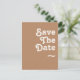 Cette carte postale rétro de plage marron pour annoncer la date de votre mariage est parfaite pour votre mariage estival simple, vintage, coloré, tropical et bohème. Sa police unique de style bohème du milieu du siècle donne à ce design une ambiance hippie groovy minimaliste classique. Supposons que vous cherchiez un design qui présente des couleurs océaniques côtières rustiques et vives pour votre mariage de destination créatif des années 70 sur la plage. Dans ce cas, ce produit, ainsi que sa collection de mariage coordonnée, sont ce que vous recherchez. N'hésitez pas à changer la couleur et à ajouter vos propres illustrations, graphiques ou photos. Si vous avez des questions sur la conception de ce produit, n'hésitez pas à nous contacter !