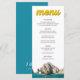 Ajoutez une touche de charme rétro à votre dîner de réception de mariage avec notre Retro Cabo Wedding Reception Dinner Menu! Avec un texte rétro jaune vif en haut et une photo époustouflante des arches de Cabo, cette carte de menu donne le ton parfait pour votre mariage à la plage. Customisez le dos avec vos initiales et remplissez les détails du menu pour une touche personnalisée. Avec son arrière - plan bleu vif et son design élégant, cette carte à la carte saura impressionner vos invités et rehausser votre décor mariage. Entrez l'outil de conception Zazzle pour des personnalisations de conception supplémentaires.