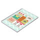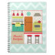 Un carnet en spirale de recette comportant une illustration d'une rétro cuisine inspirée avec un rouge, une turquoise, un jaune, et un modèle de couleurs orange. L'arrière - plan est zigzag bleu. Personnalisez avec votre nom.