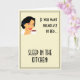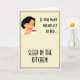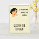 Une rétro carte façon maison avec la couverture drôle. La carte lit" si vous voulez le petit déjeuner dans le lit… SOMMEIL DANS LA CUISINE !" Tout le texte peut être customisé comprenant l'écriture à l'intérieur de la carte.