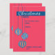 Trois ornements de Noël de style rétro orange et bleu, légèrement décalés par rapport à un arrière - plan rouge vif, un look sucré et différent pour les fêtes de Noël.