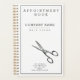 NewParkLane - Ajoutez un peu de classe et de style à votre salon de coiffure - avec ce carnet de rendez-vous élégant et minimal, avec une paire de ciseaux rétro. Avec une finition élégante et minimale de 2 cadres gris, et un modèle de texte de typographie moderne pour votre nom et votre adresse. Tous les styles, couleurs et tailles de texte peuvent être modifiés selon vos besoins. Un design sophistiqué pour n'importe quel coiffeur ! Consultez cette collection pour trouver les articles correspondants, comme les cartes de visite et les cartes de rendez-vous. Avez-vous des souhaits particuliers en matière de design personnel? N'hésitez pas à me contacter.