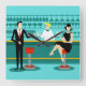 Chaque heure est l'heure heureuse avec ce Retro Cocktail Lounge Acrylique Mur Horloge. Le design moderne du milieu du siècle présente un dessin animé minimaliste et animé de style années 1960 d'un bar à cocktails élégant. Sur fond de mur d'aqua, on peut voir des rangées de verres de boisson. Au moins, on peut voir les silhouettes turquoises des lunettes de boisson. A en juger par les formes de la tige, ce bar est bien équipé pour mouiller votre sifflet, quelle que soit votre préférence de boisson. Un barman des plus compétents et personnalisables est le bar turquoise aux accents jaunes. Le jeune bardonte porte une chemise blanche immaculée avec cravate arc noir. Son apparence fraîche, ses cheveux blonds et ses lunettes noires de hipster nous donnent toutes les raisons de croire qu'il passe ses journées en tant qu'acteur en difficulté ou en tant que super-héros. D'un côté, le beau mixologiste donne un martini à un client de l'autre côté du bar. Le client en attente est un gentleman à larges épaules en costume noir et cravate rouge. C'est le genre de gars qui est décrit comme grand, sombre et beau même quand il reste des heures jusqu'à la fermeture. Il semble y avoir un tabouret rouge et chrome avec le nom de M. Debonair dessus. Mais pour ne pas être présomptueux, il pose la question : "Pardonnez-moi. Est-ce que ce siège est pris ?" Il demande à la fille aux cheveux raven sur le tabouret du bar voisin. C'est une vraie "fille d'à côté", si vous vivez à côté d'une beauté impeccable avec un personnage qui ne démissionnera pas. Elle porte une robe noire et tient un martini d'une main. Elle espère qu'elle et l'homme approchant ont plus en commun que leur préférence pour la boisson et le choix de la couleur de l'armoire. On dirait que ce soir est devenu intéressant. Bravo !