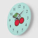 Cette horloge amusante de style rétro présente des cerises rouges vives. Le design est issu de l'art original.