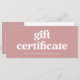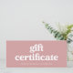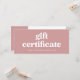 Ce certificat-cadeau de petite entreprise rose, boho et tendance, présente une typographie rétro élégante. Il y a une place pour votre logo sur le dos.