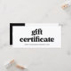 Ce certificat cadeau de petite entreprise en noir et blanc tendance et boho présente une typographie rétro élégante. Il y a une place pour votre logo sur le dos.