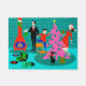 Cette rétro famille équilibrant le tapis de porte d'arbre de Noël contient chaque tradition de vacances mais le gâteau de fruits secs. Une famille de bande dessinée des années 1960 est à la maison dans leur salon moderne de la moitié du siècle. Il y a un mur de briques de turquoise et de sarcelle d'hiver et un rouge, cheminée de cône avec un feu d'hurlement. Le papa porte un costume noir et une cravatte rouge. Il accroche les bas verts de Noël sur la cheminée de mod avec soin. À côté du papa, le junior est été perché périlleux sur une chaise orange. Whoa ! Facile là, junior ! Il atteint pour mettre un ornement sur un kitchy, rose, l'arbre de Noël qui est déjà orné avec des ornements turquoises et une étoile jaune. Du bord opposé de l'arbre, la maman tient un présent de fête enveloppé. Hé, aucune secousse permise ! La maman porte une robe rouge lumineuse d'agitation avec l'équilibre blanc. Elle utilise également un casquette de Père Noël. Sous l'arbre, il y a un chat noir lisse portant un arc rouge. Sur le plancher, il y a un tourne-disque vert et noir entouré par les albums colorés de vinyle. Vous savez juste que la famille chante avec leurs chants de Noël préférés tandis qu'ils sont decking les halls.