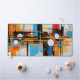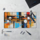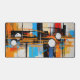 Transform your workspace with this visually stunning desk mat. The artwork features a complex, constructivist-inspired layout of vertical lines and geometric circles in vibrant blue and orange hues. This sleek accessory provides a smooth surface while adding a highly professional, creative vibe to your desk.