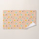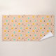 Retro geometric pattern with teal, orange, and black star-shaped diamonds on a peach background. The design conveys a playful, vintage feel.