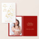 Cette jolie carte de Noël personnalisée combine les meilleures tendances des cartes de vacances modernes. L'avant est ornée d'un sapin de Noël artistique et d'un motif tourbillon d'étoiles en feuille d'or, avec une douche de flocons de neige autour. Il y a deux champs de texte à customiser. L'intérieur du front a votre photo 5 x 7, bordée de rouge vif, qui peut être affichée tout au long de l'année. L'arrière intérieur est également rouge, avec deux champs de texte personnalisés supplémentaires. Faites-le dire ce que vous voulez !