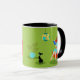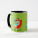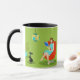 Cette Retro Reading Woman Ringer Mug présente un style années 60, art minimaliste, dessin animé d'une femme qui a ses priorités dans l'ordre. Ce délicieux ver de livres est entrainé dans un vrai tourneur de page. La brunette, toute en forme, porte une robe d'aqua et des lunettes rouges, tout en tenant un livre bleu. Elle est assise dans une chaise confortable aux oeufs rouges. Devant elle, un chat noir élégant dans un col turquoise profite de la tranquillité qui vient de vivre avec un bibliophile. Femme et chat sont tous deux dans une élégante chambre verte. Au-dessus, une lampe pendentif kitsch dans les tons jaune et turquoise. Sur le côté, un plante luxuriant, tropical, en pots, est installé dans un aqua fleuri. Kitty, si vous avez besoin de quelque chose, vous devrez attendre jusqu'à ce qu'elle finisse ce chapitre !