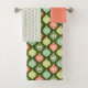 Un motif de Noël rétro, mignon, amusant et festif a inspiré mon design moderne du milieu du siècle. ornements vintages, flocons de neige de style atomique, étoiles et formes triangles dans les couleurs de Noël de sauge vert, rouge, pêche et blanc.