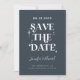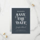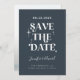 Retro enregistrer la carte de date avec une police bloquée qui dit "enregistrer la date" avec les étoiles modernes du milieu du siècle autour. La couleur arrière - plan est bleu nuit. Vous pouvez ajouter une photo au dos.