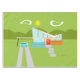 Cette rétro Chambre de Palm Springs avec la nappe de voiture est le rêve d'un amant moderne de la moitié du siècle. Les caractéristiques de conception minimalistes d'art une maison orange et en verre lisse avec un toit se renversant nettement de forme de trait de repère. La porte rouge compense le planteur en pierre orange rempli de verdure et d'écran décoratif d'intimité de cinderblock de turquoise. Les blocs de béton décalés forment le passage couvert parfait par la pelouse luxuriante et verte. Un parking blanc offre l'abri à une turquoise et à une voiture classique blanche des années 1950 avec des ailerons. La voiture est parfaite pour conduire autour du vert, montagnes arrondies dans la distance. La maison kitschy de style des années 1960 ressemble à une oasis louche du chaud, le soleil de Palm Springs.