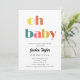 Cette invitation au baby shower lumineuse et joyeuse présente un style et des polices rétro, avec des couleurs audacieuses. Un style vintage et super qui saura faire ressortir votre invitation !
