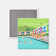 Cet aimant carré Retro Palm Springs Hotel est aussi fabuleux qu'il est kitschy. Sa façade d'arc-en-ciel garni est éclipsée par les montagnes vertes de citron vert et les palmiers spectaculairement iconiques. Il y a une fête au bord de la piscine avec des beautés de baignade et des hommes de muscle qui absorbent un peu de vitamine D tout en regardant les nageurs synchronisés se produire. Il semble qu'un seul des nageurs connaît la routine ; les quatre autres sont désynchronisés. Quelle honte pour eux ! La seule chose qui rendrait cette conception dire "Palm Springs" plus serait si elle était écrite dans les nuages. Attends. C'est vrai !