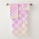 Un motif d'à damiers d'inspiration rétro avec un design rose et dégradé Peach Fuzz.