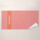 This bath towel set features a bold preppy stripe pattern in trending pink and orange hues. It is the perfect personalized addition to a modern dorm bathroom or a bright coastal home. You will love how the chunky retro typography makes your name pop against the vibrant geometric background. This set makes a thoughtful custom gift for bridesmaids, college students, or anyone who loves a punchy, colorful aesthetic.