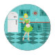 Avec cette rétro planche à découper de cuisine, vous pouvez prendre votre tarte et le manger, aussi. Ce dessin kitschy et minimaliste d'art comporte une femme au foyer parfaite des années 1950, dans sa cuisine moderne de la moitié du siècle. Le beau boulanger porte un flouncy, la robe de vert et un tablier blanc avec détailler rouge. Pas des cheveux sur sa tête blonde sont hors d'endroit. Dans une main, elle tient le fruit de son travail--un magnifique, trellis a complété, tarte de fruit. Un regard et vous saurez que ses pâtes à tarte floconneuses sont en second lieu à aucun. Elle se tient sur un plancher de damier d'aqua et de sarcelle d'hiver, dont est assurément assez propre pour manger. Contre un mur d'aqua, nous voyons le cabinetry turquoise avec le travail d'équilibre d'aqua, une partie supérieure du comptoir rouge, des tractions rouges de tiroir, et des accents noirs de starburst. Un rouge, horloge de starburst accroche sur le mur. Au côté, il y a un réfrigérateur de pointe et blanc avec les poignées argentées. Au moins, le réfrigérateur était la situation actuelle in 1950. Maintenant, il est juste rêveur simple ! Si vous êtes ménagère de Suzie ou avez simplement une affinité pour tout le cru de choses, vous êtes sûrs d'aimer cette tranche délicieuse d'americana.