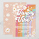 Celebrate your childs special day with this retro rainbow birthday invitation featuring playful pastel colors, peace signs, daisies, butterflies, and smiley faces. Perfect for a groovy 5th birthday party, this hippie-inspired design brings peace, love, and fun to your celebration. Customize with party details to create a unique keepsake guests will adore. Ideal for kids birthdays, retro-themed parties, and colorful celebrations.