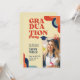 Chantez votre enfant de fleurs intérieures et jetez un bassin super pour célébrer votre diplôme! Cette invitation d'inspiration rétro comprend un espace photo d'angle arrondi, parfait pour présenter vos photos de seniors. Avec une palette éclatante de couleurs rouge, beige et les années 70, des polices super et une illustration de marguerite ludique, cette invitation donnera certainement le ton à une fête de remise de diplômes lointaine.