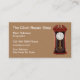 Magasin d'horlogerie et atelier de réparation d'horloge cartes de visite éditable modèle de conception avec l'image d'une pendule horloge dans l'arrière - plan et la disposition simple conçu pour être customisé en ligne.