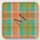 Un plaid rétro dessiné à la main dans orange chaud, turquoise et vert, accentué d'un monogramme personnalisable. Ce dessous de verre personnalisé est un cadeau unique pour les vacances, les ménagères, ou divertissement quotidien. Durable et élégant, c’est une façon classique de protéger les surfaces de table.