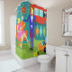 Ce de rétros rideau en douche étiré de Martini par couples ressemble à une scène hors d'une comédie romantique. L'arrangement de ce style des années 1960, conception minimaliste d'art est une maison d'une manière élégante décorée, de la moitié du siècle ou un appartement moderne. La fonte est un couple attrayant appréciant une soirée remplie de conversation de scintillement, de bonne musique et de boissons sans fond. La salle comporte un plancher vert, et un mur de briques d'aqua et de sarcelle d'hiver. Se reposant confortablement dans un mod, la chaise orange d'oeufs est une belle femme. Sa robe rose lumineuse est juste assez courte pour montrer ses gams bien faits. Avec la vague d'une main, cette beauté blonde a l'attention immédiate de son admirateur masculin. Son compagnon d'une chevelure juste porte un costume bleu, une chemise blanche et une cravatte noire d'arc. Dans des ses mains, il tient deux, verres en cristal de martini avec les olives de flottement. Ne vous inquiétez pas. Il offre un à son amie de dame. La paire a une heure si délicieuse que ni l'un ni l'autre ne prend à avis de l'heure montrant sur le kitschy, rouge, horloge de starburst sur le mur de briques derrière elles. Sur un mur rouge ardent enfoncé, il y a film Martini de trois classiques les copies étirées de toile, aussi fournies par le magasin de Zazzle de StrangeLittleOnion (signe, signe !) deux des milieux de turquoise de caractéristique d'impression et on est sur un arrière - plan noir dramatique. Centré sous les copies est un mini-bar élégant. L'avant de la barre turquoise a trois diamants de harlequin, dans les nuances de l'orange, de la turquoise et du vert. Nous pouvons voir les silhouettes des verres de martini se reposant sur le plan de travail. À travers la salle, un tabouret orange tient un tourne-disque bleu et noir, portatif. Sur le plancher, nous voyons les disques vinyle et une couverture jaune lumineuse d'album. Ce duo attrayant a une heure si délicieuse que ni l'un ni l'autre ne prend à avis de l'heure montrant sur le kitschy, rouge, horloge de starburst sur le mur de briques derrière elles.