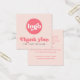 carte de remerciements d'entreprise carré avec le texte "Merci" dans une police de style rétro. Texte rose (ou couleur personnalisée) sur un arrière - plan rose pâle. Téléchargez votre logo sur le devant et ajoutez du texte personnalisé sur le dos. Vous pouvez modifier les couleurs, déplacer et redimensionner les éléments à l'aide de l'outil de conception.