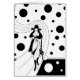 Illustration art déco vintage avec une femme chic habillée d'un casquette et d'un manteau et portant un sac à main. La femme marche le long d'un chemin flottant. Des pois noirs, des cercles ou des bulles flottent autour. L'arrière - plan est clair, vous pouvez donc ajouter n'importe quelle couleur ! Cliquez sur le bouton "customisez-le" !