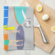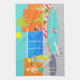Avancez dedans ! L'eau est très bien ! Cette rétro serviette de cuisine de réception au bord de la piscine comporte un dessin vibrant, de bande dessinée d'un amusement et une réception au bord de la piscine sophistiquée. Les centres de conception moderne de la moitié du siècle autour d'une piscine ronde sur un grand, gris, concret patio. La piscine est remplie avec de l'eau turquoise. La brique orange entoure la piscine et il y a un blanc, panneau de plongée de planche tout prêt pour une âme aventureuse. Un ballon de plage rouge et blanc flotte dans l'eau. Du bord opposé de la piscine, deux partie-amateurs balancent leurs pieds dans l'eau, tout en se reposant sur les serviettes de plage rayées rouges et blanches. La femme avec les cheveux noirs utilise un maillot de bain en un seul morceau rose. Près de elle, est une boisson tropicale dans une noix de coco avec un petit parapluie et une paille verte. L'homme blond porte les troncs vert clair. Il est donné un coup de pied de retour avec ses mains derrière sa tête. À la gauche de la piscine, est un homme distingué avec des troncs de bain de cheveux blancs et de jade tenant une boisson dans une coquille de noix de coco. Nous savons qu'il a distingué parce qu'il est un homme avec les cheveux blancs ! Il parle à une femme avec des cheveux blonds et un chiffre de sablier utilisant un maillot de bain de turquoise. Lancée à travers son bras est une serviette de plage jaune. Derrière cette scène est la silhouette verte d'un palmier et d'une orange futuriste, maison de brique. Par le grand, plancher au plafond, vitraux bleus, vous pouvez voir la silhouette d'une télévision, d'une chaise, d'un tabouret, et d'une horloge de starburst. Le ciel derrière la maison est une turquoise sans nuages avec un soleil rond et jaune.