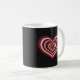 A stylish ceramic mug featuring a bold retro striped heart design in red set against a black background. This minimalist yet expressive design adds a warm, artistic touch to your daily coffee or tea ritual.