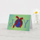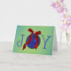 Il s'agit d'une simple carte "JOY" en couleurs saisonnières vintages de rouge et vert. Dans la parole de JOY, le O est un ornement bleu vintage. L'intérieur dit "Je vous souhaite l'Amour, la Paix et la Joie que le vrai sens de Noël apporte." sur un ton bleu saisonnier.