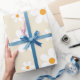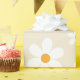 Un emballage cadeau d'anniversaire d'inspiration rétro avec des marguerites de style années 70 dans les couleurs d'automne.