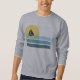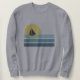 Ce sweatshirt comporte un bateau à voile sur la navigation de l'eau devant le soleil. Il a sensation moderne/rétro distinctive de la moitié du siècle.