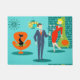 Miel, je suis maison ! Ce rétro tapis de porte de couples de bande dessinée d'âge d'espace vous aura vous sentir envieux des couples de bande dessinée sur un carreau ! Les caractéristiques de conception un arrière - plan de turquoise avec des briques turquoises et un vert olive, cheminée de cône. Un chat lisse et noir se repose sur une chaise orange lisse. Il y a une sarcelle d'hiver, horloge murale de starburst et une lampe pendante à deux étages aux nuances de jaune, du bleu et du noir. Avant et centre, il y a un homme d'affaires distingué, de martini-swilling dans un costume bleu et une cravate orange. À son côté, sa bombe blonde d'une épouse de trophée porte une robe rouge d'agitation et tient un plateau des martini. Va-va-va-voom !
