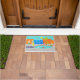 Avancé dedans ! L'eau est très bien ! Ce rétro tapis de porte de réception au bord de la piscine comporte un dessin vibrant, de bande dessinée d'un amusement et une réception au bord de la piscine sophistiquée. Les centres de conception moderne de la moitié du siècle autour d'une piscine ronde sur un grand, gris, concret patio. La piscine est remplie avec de l'eau turquoise. La brique orange entoure la piscine et il y a un blanc, panneau de plongée de planche tout prêt pour une âme aventureuse. Un ballon de plage rouge et blanc flotte dans l'eau. Du bord opposé de la piscine, deux partie-amateurs balancent leurs pieds dans l'eau, tout en se reposant sur les serviettes de plage rayées rouges et blanches. La femme avec les cheveux noirs porte un rose, maillot de bain en un seul morceau. Près de elle est une boisson tropicale dans une noix de coco avec un petit parapluie et une paille verte. L'homme blond porte les troncs lumineux et verts. Il est donné un coup de pied a soutenu avec ses mains derrière sa tête. À la gauche de la piscine, est un homme distingué avec des troncs de bain de cheveux blancs et de jade tenant une boisson dans une coquille de noix de coco. Nous savons qu'il a distingué parce qu'il est un homme avec les cheveux blancs ! Il parle à une femme avec des cheveux blonds et un chiffre de sablier utilisant un maillot de bain de turquoise. Lancée à travers son bras est une serviette de plage jaune. Derrière cette scène est la silhouette verte d'un palmier et d'un futuriste, orange, maison de brique. Par le grand, plancher au plafond, vitraux bleus, vous pouvez voir la silhouette d'une télévision, d'une chaise, d'un tabouret, et d'une horloge de starburst. Le ciel derrière la maison est une turquoise sans nuages avec un soleil rond et jaune. Le bord opposé du coussin comporte un motif orange de brique.