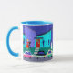 Cette rétro tasse de Noël de partie de bande dessinée de vacances vous mettra dans l'esprit de vacances. Les caractéristiques de conception l'extérieur d'une maison moderne de la moitié du siècle. Par le plancher aux murs de verre de turquoise de plafond, nous pouvons voir les silhouettes de bleu marine des amateurs joyeux de partie. Il y a des couples causant devant un arbre de Noël vert, qui est décoré des ornements turquoises. Du bord opposé de la salle, nous pouvons voir qu'un homme de danse et l'homme prolixe chacun essaye d'éviter. L'extérieur de la maison comporte une porte rouge gaie avec une guirlande de vacances, une cheminée pourpre surdimensionnée de brique, et des mèches des lumières de Noël colorées. Un passage couvert gris coupe un bandage à l'entrée principale, par l'herbe turquoise. La scène de nuit a un ciel bleu-foncé avec un jaune, croissant de lune. Le bonhomme de neige de plastique décorant la cour est salué par les premières bourrasques de neige de la saison. Un couple attrayant fait le cha-cha-cha sur le chemin à leur voiture. La femme blonde porte une robe rouge lumineuse. Elle tient un brin de gui dans une main. Son escorte belle porte un costume noir et une cravatte rouge. Ses mains sont enroulées autour de la taille de la femme. Sur la rue, devant la maison, nous pouvons voir trois, voitures classiques brillamment colorées. L'ordre aujourd'hui et la partie comme elle est 1959 !