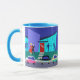 Cette rétro tasse de partie de Chambre ouverte vous mettra dans l'humeur partying. Les caractéristiques de conception de bande dessinée l'extérieur d'une maison moderne de la moitié du siècle. Par le plancher aux murs de verre de turquoise de plafond, nous pouvons voir les silhouettes de bleu marine des amateurs joyeux de partie. Il y a des couples causant devant une fenêtre. Du bord opposé de la salle, nous pouvons voir qu'un homme de danse et l'homme prolixe chacun essaye d'éviter. L'extérieur de la maison comporte une porte rouge gaie et une cheminée pourpre surdimensionnée de brique. Un passage couvert gris coupe un bandage à l'entrée principale, par l'herbe turquoise. La scène de nuit a un ciel bleu-foncé avec un jaune, croissant de lune. Un couple attrayant fait le cha-cha-cha sur le chemin à leur voiture. La femme blonde porte une robe rouge lumineuse. Son escorte belle porte un costume noir et une cravatte rouge. Ses mains sont enroulées autour de la taille de la femme. Sur la rue, devant la maison, nous pouvons voir trois, voitures classiques brillamment colorées. L'ordre aujourd'hui et la partie comme elle est 1959 !