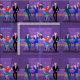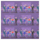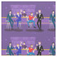 Cette rétro conception de tissu de bar gay est pourpre, kitschy, et tout à fait fabuleuse ! Se reposant sur les barstools modernes de la moitié du siècle, buvant leur amusement, les boissons roses, ces messieurs pimpants temps ont ol gai'. Le barman hunky avec un bowtie rose verse déjà le prochain Round. Les silhouettes de la boisson alcoolisée atomique met la ligne en bouteille le mur et l'appareil d'éclairage des années 1960 de style vintage de spoutnik accroche au côté. La seule chose directement au sujet de cette barre est la barre !