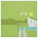 Cette rétro Chambre de Palm Springs avec le tissu de coton peigné par voiture est le rêve d'un amant moderne de la moitié du siècle. Les caractéristiques de conception minimalistes d'art une maison orange et en verre lisse avec un toit se renversant nettement de forme de trait de repère. La porte rouge compense le planteur en pierre orange rempli de verdure et d'écran décoratif d'intimité de cinderblock de turquoise. Les blocs de béton décalés forment le passage couvert parfait par la pelouse luxuriante et verte. Un parking blanc offre l'abri à une turquoise et à une voiture classique blanche des années 1950 avec des ailerons. La voiture est parfaite pour conduire autour du vert, montagnes arrondies dans la distance. La maison kitschy de style des années 1960 ressemble à une oasis louche du chaud, le soleil de Palm Springs.