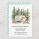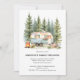 Retrouvailles Forêt rustique moderne Invitation simple avec un adorable campeur vintage tout installé dans la forêt, entouré de pins et d'un feu de camp accueillant. Tout le texte sur l'invitation est facilement changé à vos détails de réunion et le dos de l'invitation est un joli motif en vichy. Quelle belle façon d'invitation votre famille à votre prochaine réunion.