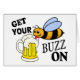 Abeille mignonne léchant à une tasse écumeuse glacée de bière et espérant réussir son bourdonnement ! Et vous devriez aussi !