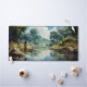Une rivière étincelante bordée de rochers et de fleurs sauvages serpente à travers une forêt verte. Une jeune fille se tient dans l'eau, regardant à l'endroit où la rivière disparaît autour du virage. Pense-t-elle au monde au-delà ? rêve-elle de suivre la rivière jusqu'à son extrémité ? Nous ne le saurons peut-être jamais.