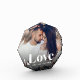 Créez un doux souvenir de votre mariage, lune de miel ou moment spécial avec ce bloc photo en acrylique de forme unique et personnalisé qui est parfait pour les couples. Ajoutez une photo et une personnaliser préférées avec vos noms en bas. "L'amour" apparaît comme un texte blanc superposé dans le lettrage moderne.