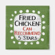 Un design typographique amusant qui dit "Poulet frit : Peut Recommander, 5 Étoiles". C'est du texte en noir et rouge sur un rectangle blanc avec des points blancs amusants autour, le tout sur un arrière - plan vert.