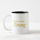 La Mug à café à deux tons "Rhode Island Strong" incarne les tendances contemporaines du design tout en célébrant la résilience et l'esprit de Rhode Island. Conçu avec un oeil attentif pour l'esthétique moderne, ce mug mêle harmonieusement élégance minimaliste et messagerie impactée. La typographie audacieuse et élégante de "Rhode Island Strong", en lettres d'or frappantes, est bien visible sur le devant de la tasse. L'utilisation d'accents dorés ajoute une touche de luxe et de prestige, élevant l'attrait visuel de la tasse et faisant une déclaration puissante. Le choix de la police reflète les sensibilités du design moderne, avec des caractères sans empattement élégants qui véhiculent un sentiment de force et de résilience.