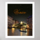 A night view of the Rialto Bridge over the Grand Canal of Venice, Italy.
