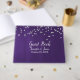 Livre d'or mariage violet violet riche en satin, avec des graphiques de parties scintillant en diamant, sur le dessus. Personnalisez le texte blanc, à l'avant du livre, pour votre journée spéciale. Des produits mariage Ultra Violet correspondants sont disponibles.