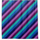 Un rideau de douche avec un design motif coloré de bandes diagonales en turquoise cool, bleu océan, bleu marine, pourpre prune et lavande.